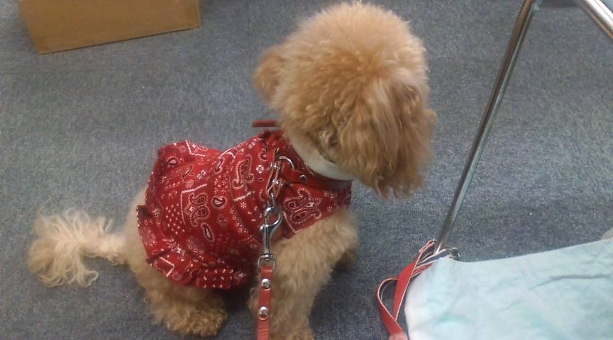 先週花を会社に連れて行ったとき、少しオシャレをしていきました。