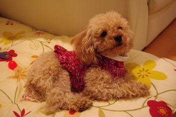 自分の寝床と私のベッドを行ったり来たり、息づかいも荒くドアの方を気にしたり・・・