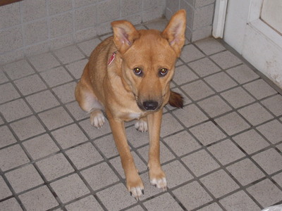 茶色で痩せ型 立ち耳 鼻と周りの毛が黒い