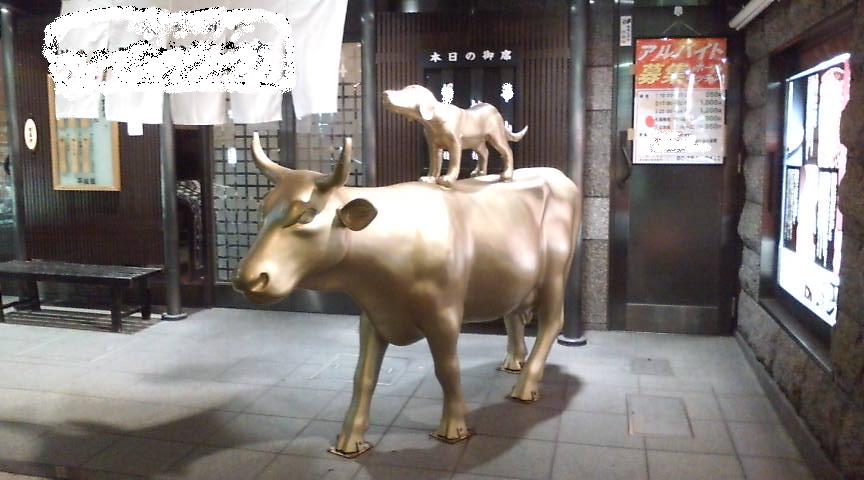 黄金の牛(なぜか背中に犬)