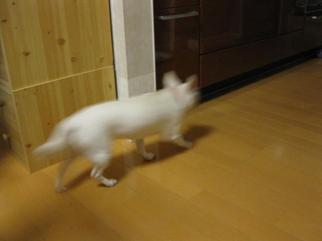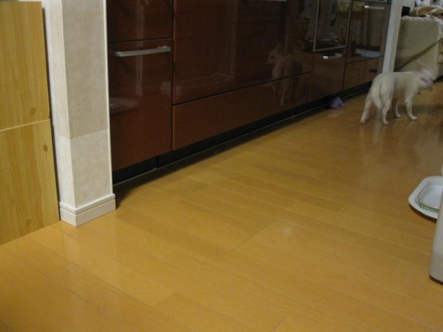 普通に床を歩いていても、フリースが後足に引っかかると