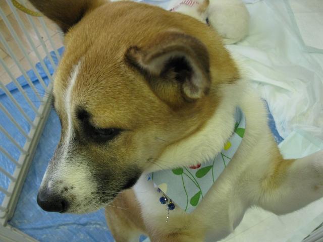 保護犬が、疥癬と皮膿症で治療をしています。