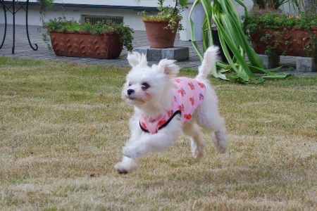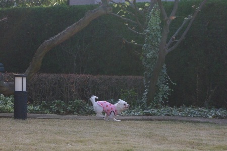 お庭デビューも果たし、先住犬とも少しだけど近づいてます。