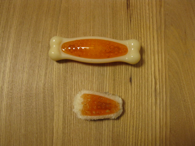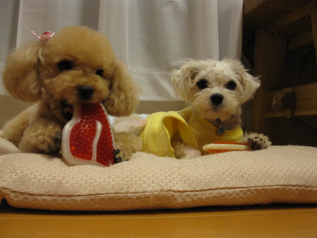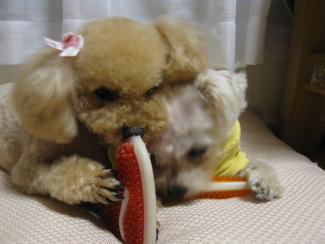 実は、このおもちゃの他にも梨の木で出来たおもちゃをかじり続けます。