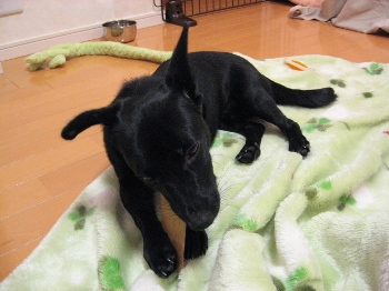寝るときは私の横に麦の布団を並べますが、以前は自分の布団に
