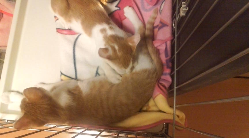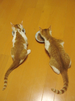 生後4ヶ月半の茶白の兄弟。