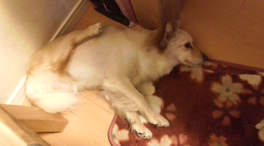 帰った後、麦ちゃん歩きすぎたのかちょっとダウン。