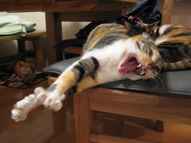 昨日のアンモニア臭騒ぎに続き、今日の朝は風ちゃんの「起きてにゃの~」攻撃に