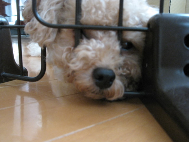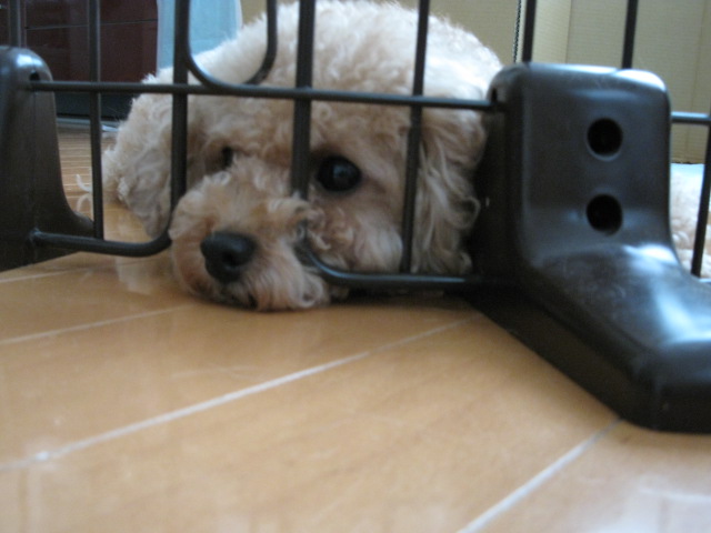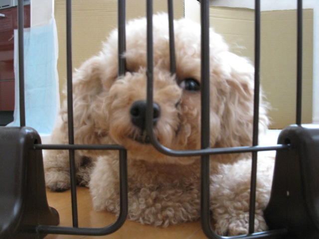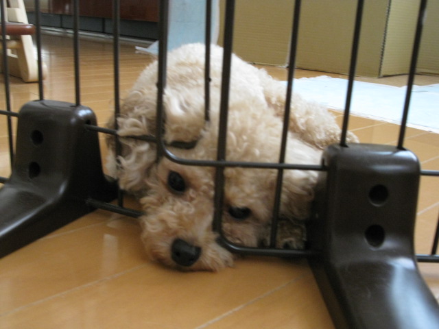 テーブルの上の荷物を引きずり下ろしたり、柵代わりの段ボール箱を